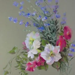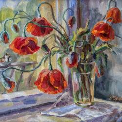 I observe how the sun’s rays play with the petals of flowers, hide in the bends of stems and cast light shadows on the surface. I allow myself to be a stream of sunlight and share my impressions in my paintings.