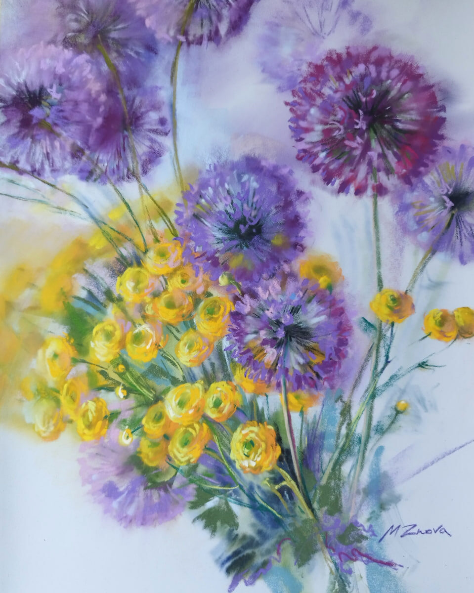 #flowers #spring #pastel #watercolor #flowersofUkraine #Ukrainianartist #znovart #floralart #PastelDreams #OrnamentalGarlic #Buttercups #ArtisticSpring #FloralFantasy