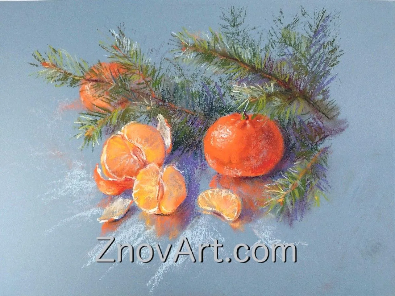 #Pastel #Watercolor #Tangerine #WinterWonder #TangerineTales #PinePerfume #ArtisticNature #VibrantVistas