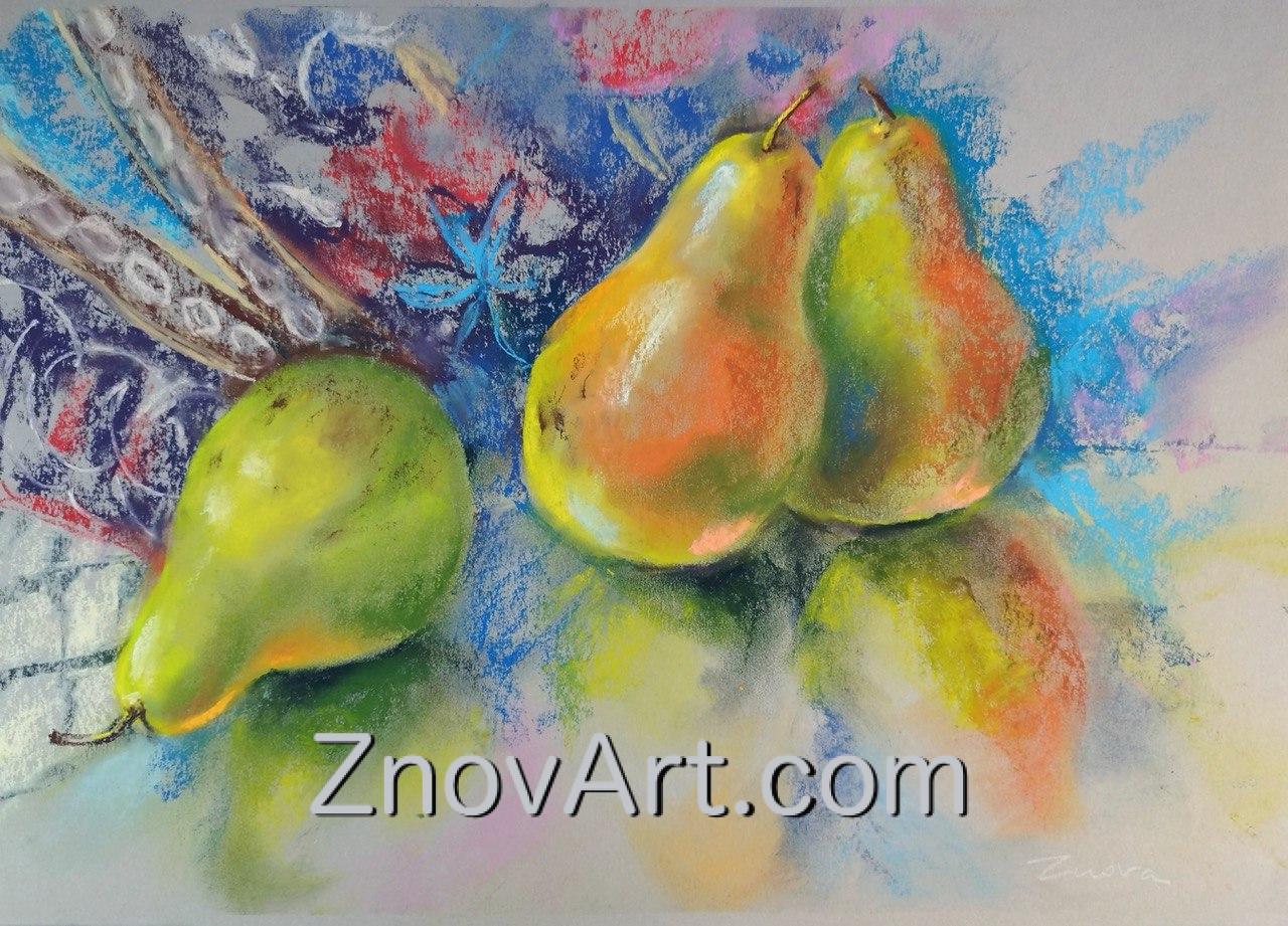 #Pastel #Watercolor #Pears #AbstractArt #Colorful #FruitArt