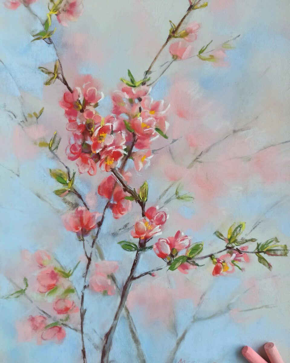 #Flowers #Pastel #Watercolor #Quince #PastelArt #FloralPainting #SpringVibes #ArtisticNature
