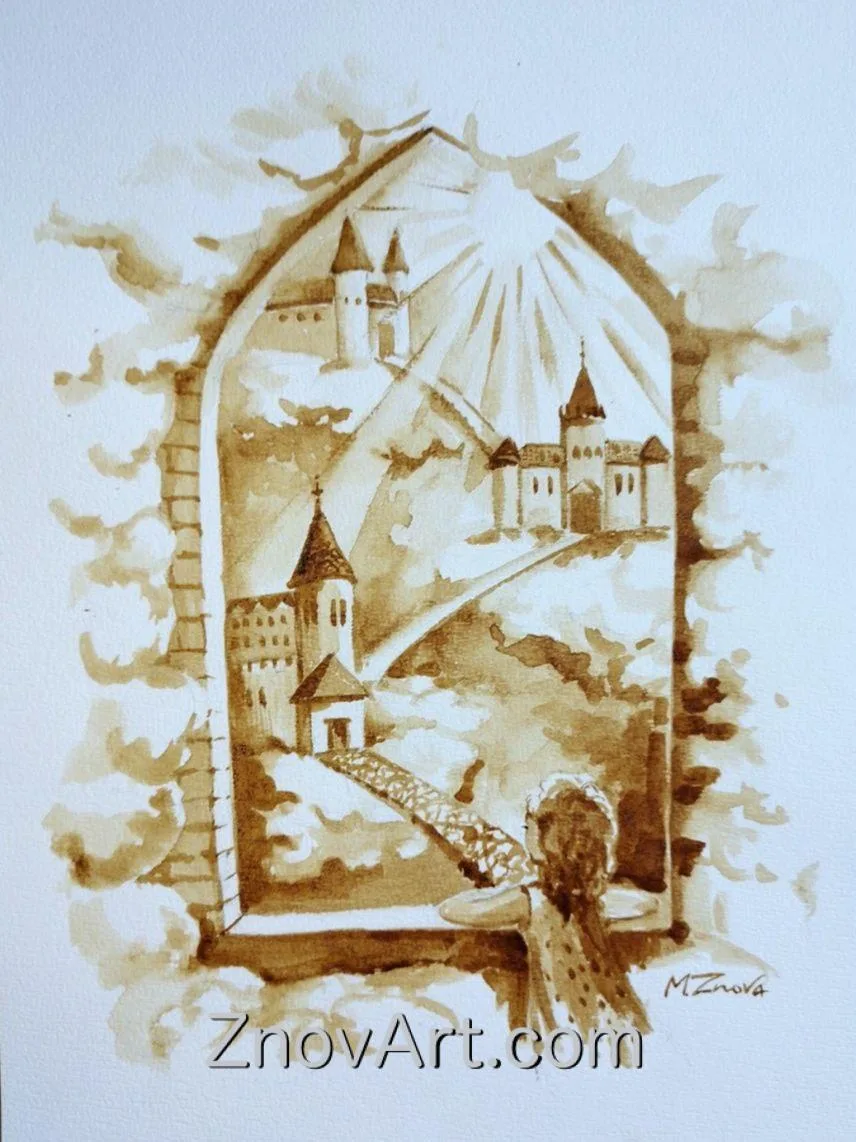 #CoffeeArt #WatercolorCastle #ArtisticExpression #CafeCulture #BaristaLife #CastleInACup #BrewedFantasy