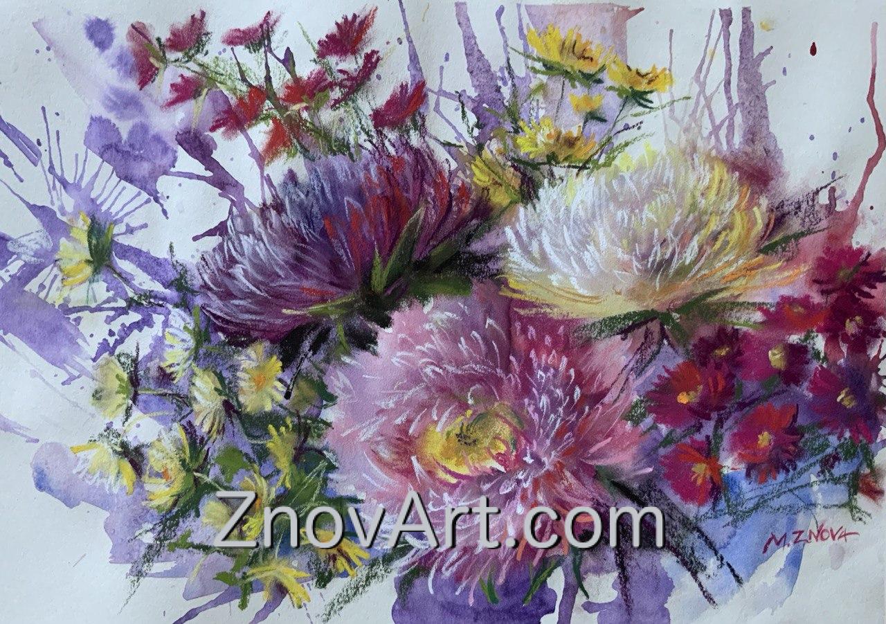 #Flowers #Pastel #Watercolor #Asters #Bloom #NatureArt #VividColors #FloralBeauty