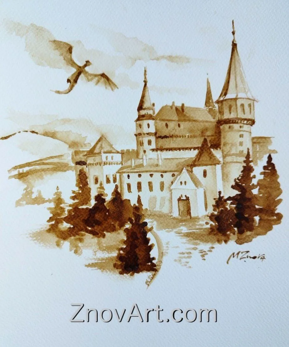#CoffeeArt #WatercolorCastle #ArtisticExpression #CafeCulture #BaristaLife #BojniceCastle #Slovakia #ArtistryInBrew #CastlePainting