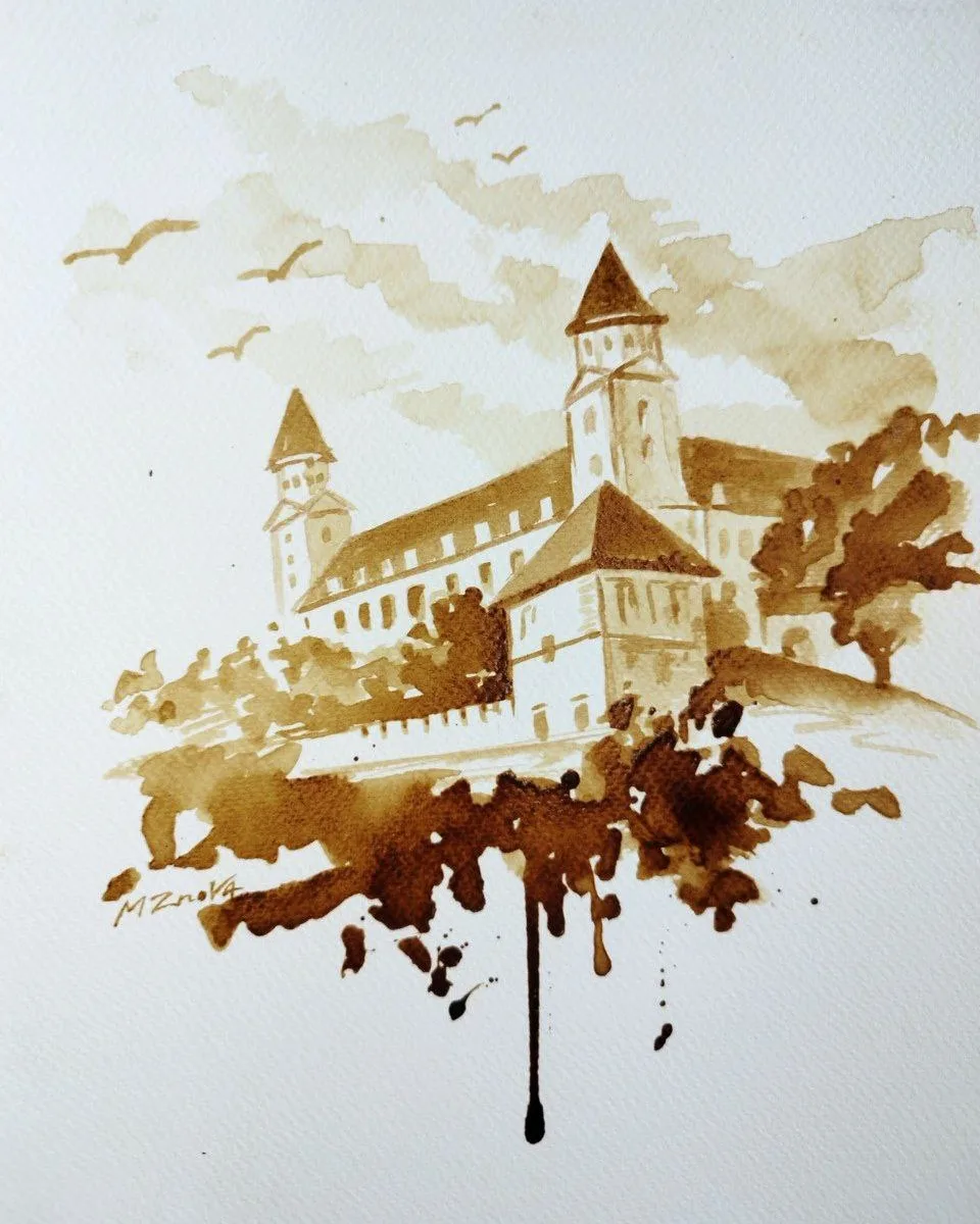 #CoffeeArt #WatercolorCastle #ArtisticExpression #CafeCulture #BaristaLife #BratislavaCastle #EspressoElegance #HistoricBrew #ArtisticBlend