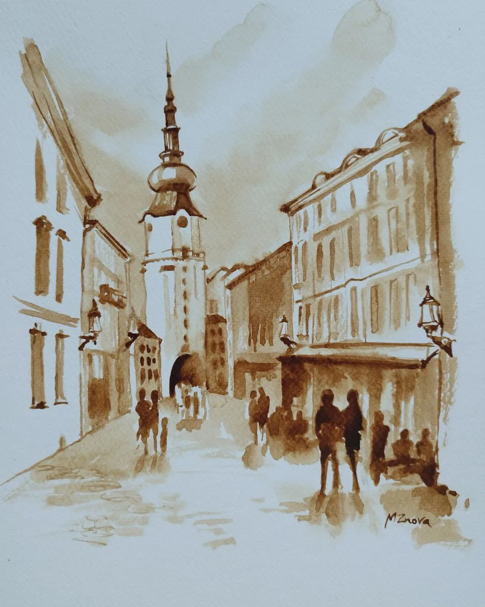 #CoffeeArt #ArtisticExpression #CafeCulture #BaristaLife #BratislavaArt #OldTownCharm #HistoricBeauty #WatercolorMagic