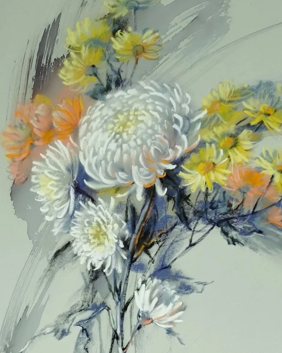 #flowers #pastel #watercolor #ArtisticBloom #ChrysanthemumCharm #FloralElegance #SerenePainting #ColorfulBouquet