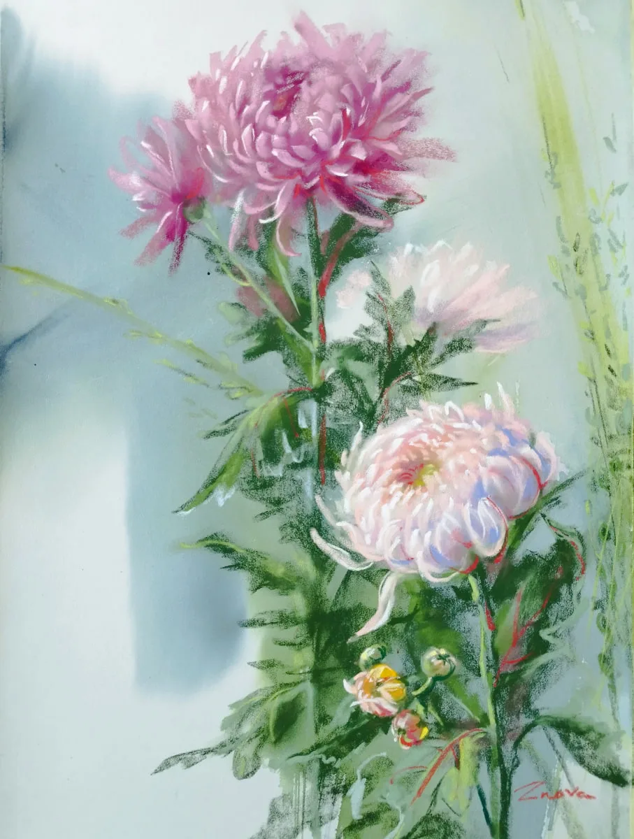#Flowers #Pastel #Watercolor #Chrysanthemums #FloralPainting #PastelArt #BloomBeauty #ArtisticExpression