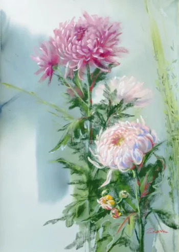 #Flowers #Pastel #Watercolor #Chrysanthemums #FloralPainting #PastelArt #BloomBeauty #ArtisticExpression