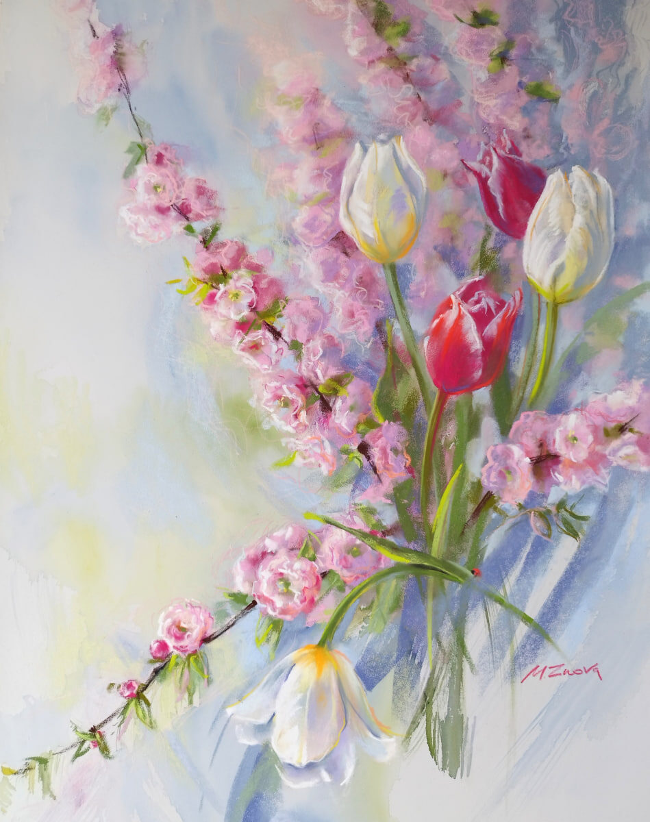#flowers #spring #pastel #watercolor #flowersofUkraine #Ukrainianartist #znovart #floralart #PastelDreams #TulipTales #AlmondAria #SpringPainting #ArtisticSpring #FloralFantasy