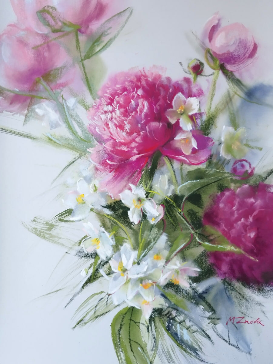 #flowers #summer #pastel #watercolor #flowersofUkraine #Ukrainianartist #znovart #floralart #PastelDreams #PeoniesBlossom #Jasmine #ArtisticSummer #FloralFantasy