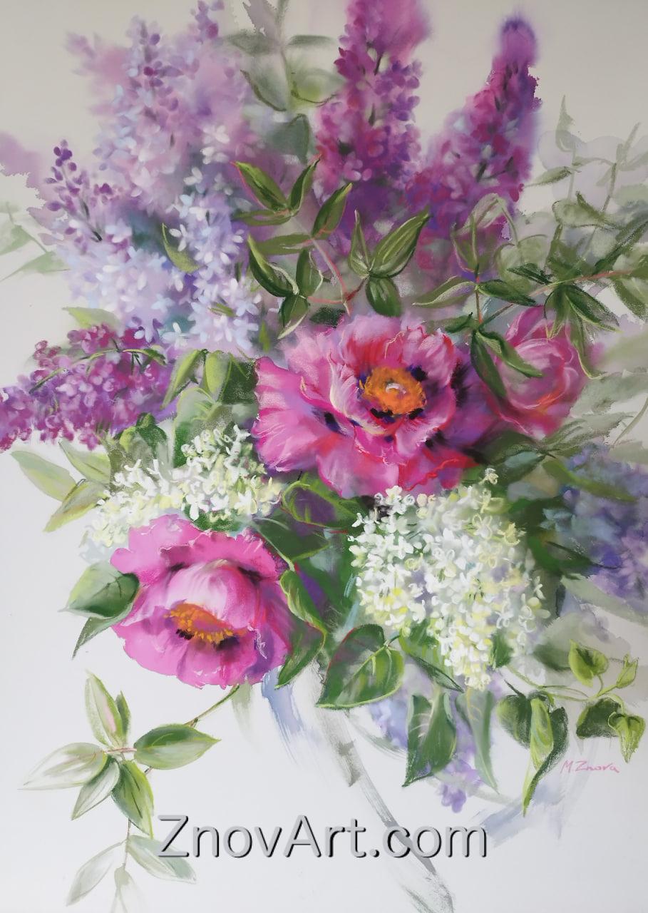 #Flowers #Pastel #Watercolor #Peonies #Lilac #FloralPainting #PastelArt #BloomBeauty #ArtisticExpression #VibrantColors