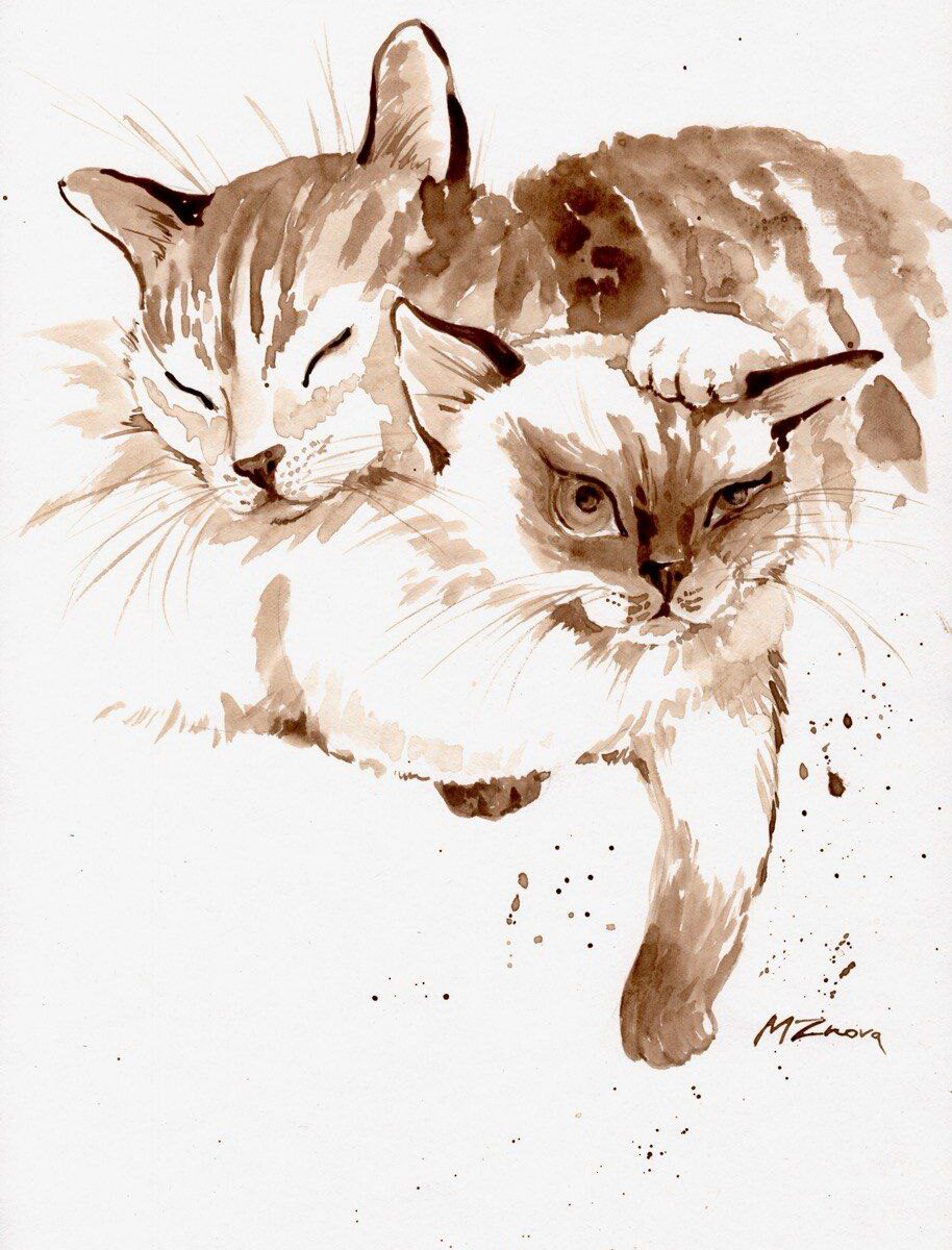 #CoffeeArt #WatercolorCats #ArtisticExpression #CafeCulture #BaristaLife #FelineArt #RestfulGaze #ArtisticWhiskers #PaintedPaws