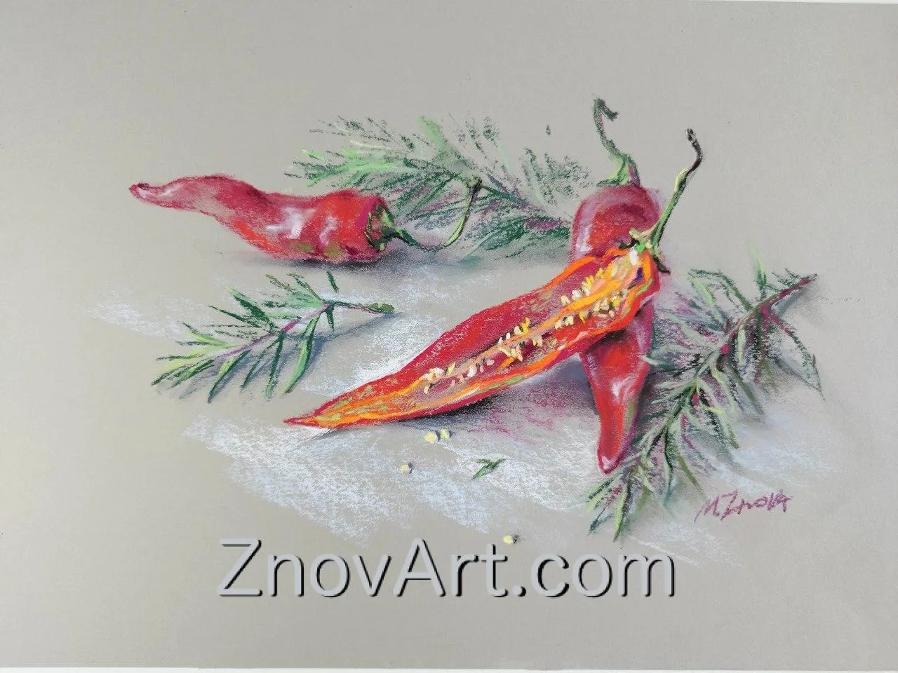 #Pastel #Watercolor #Pepper #ChiliArt #SpicySketch #PepperAndRosemary #SpicyAndHerbal #ArtisticTaste #VibrantSketch #KitchenArt #PepperPainting #ArtisticFlavors
