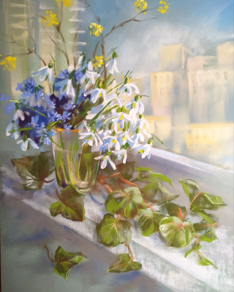 #Flowers #Pastel #Watercolor #ImpressionistArt #Primroses #UrbanBackdrop #FloralArt #CityLife #ArtLovers #PeacefulScenes