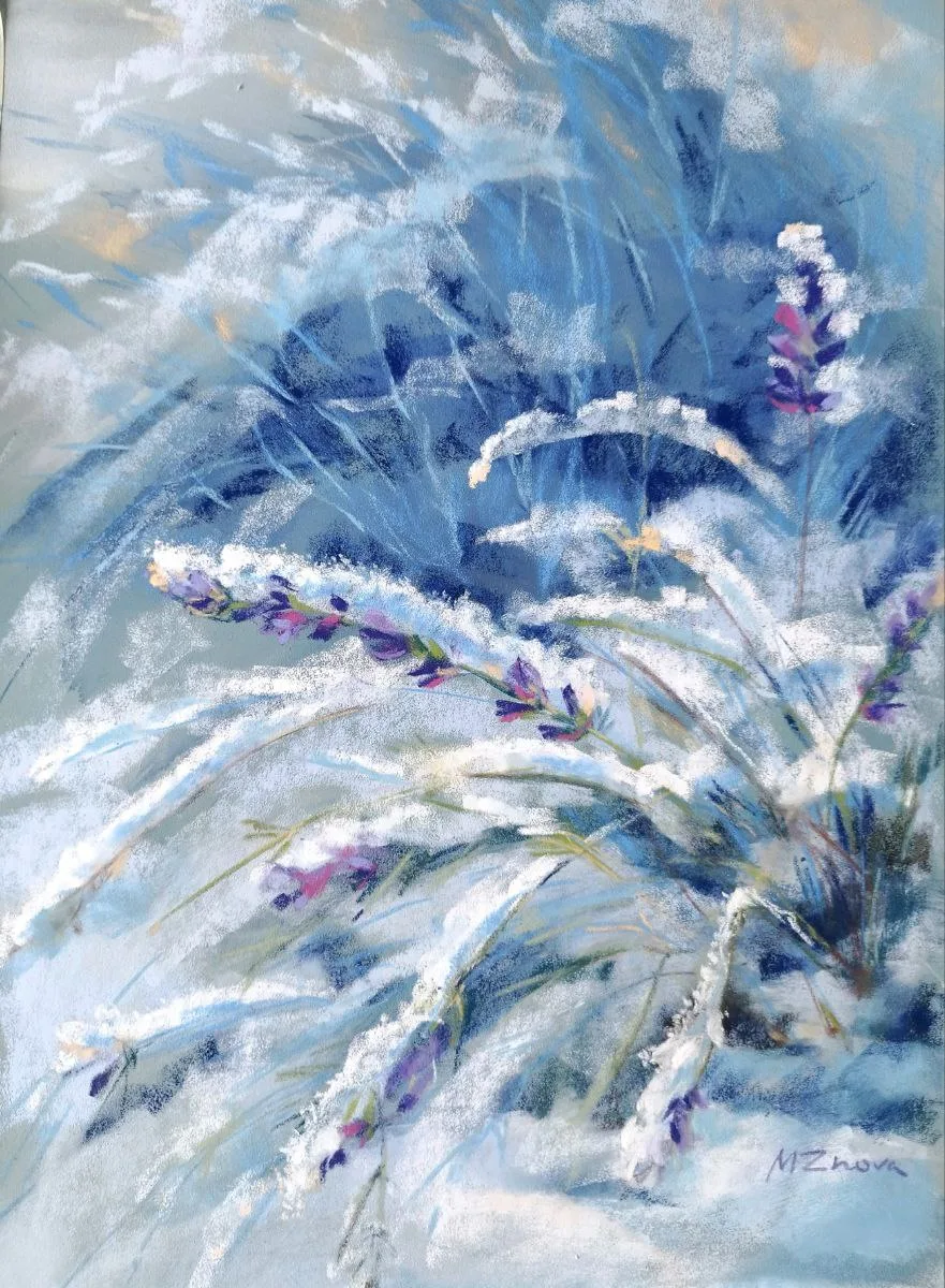 #flowers #pastel #watercolor #SnowLavender #WinterWhisper #PurpleSnowfall #NatureCanvas #SereneScapes