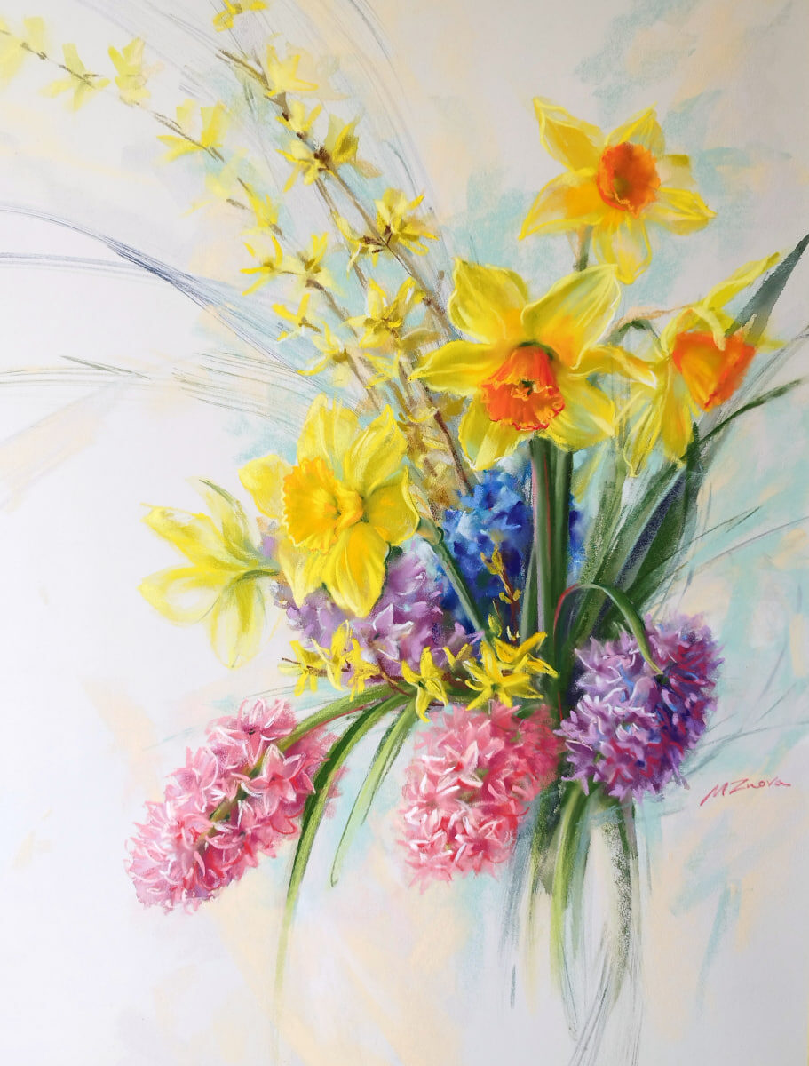 #flowers #spring #pastel #watercolor #flowersofUkraine #Ukrainianartist #znovart #floralart #PastelDreams #DaffodilDelight #HyacinthHues #ForsythiaBloom #SpringPainting #ArtisticSpring #FloralFantasy