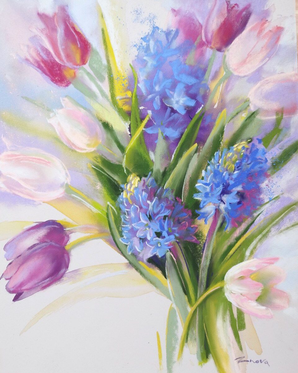 #Flowers #Pastel #Watercolor #TulipBouquet #HyacinthHarmony #FlowerPainting #ArtisticBloom #VibrantFlorals