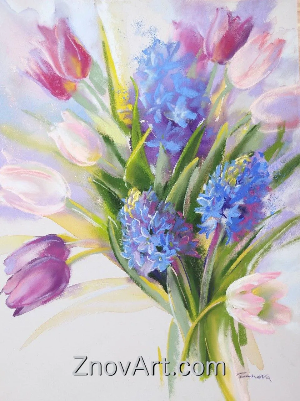 #Flowers #Pastel #Watercolor #TulipBouquet #HyacinthHarmony #FlowerPainting #ArtisticBloom #VibrantFlorals