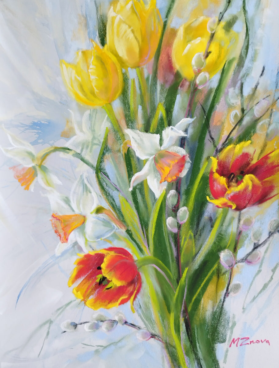 #flowers #spring #pastel #watercolor #flowersofUkraine #Ukrainianartist #znovart #floralart #PastelDreams #TulipsInBloom #DaffodilsDelight #WillowWhispers #ArtisticSpring #FloralFantasy