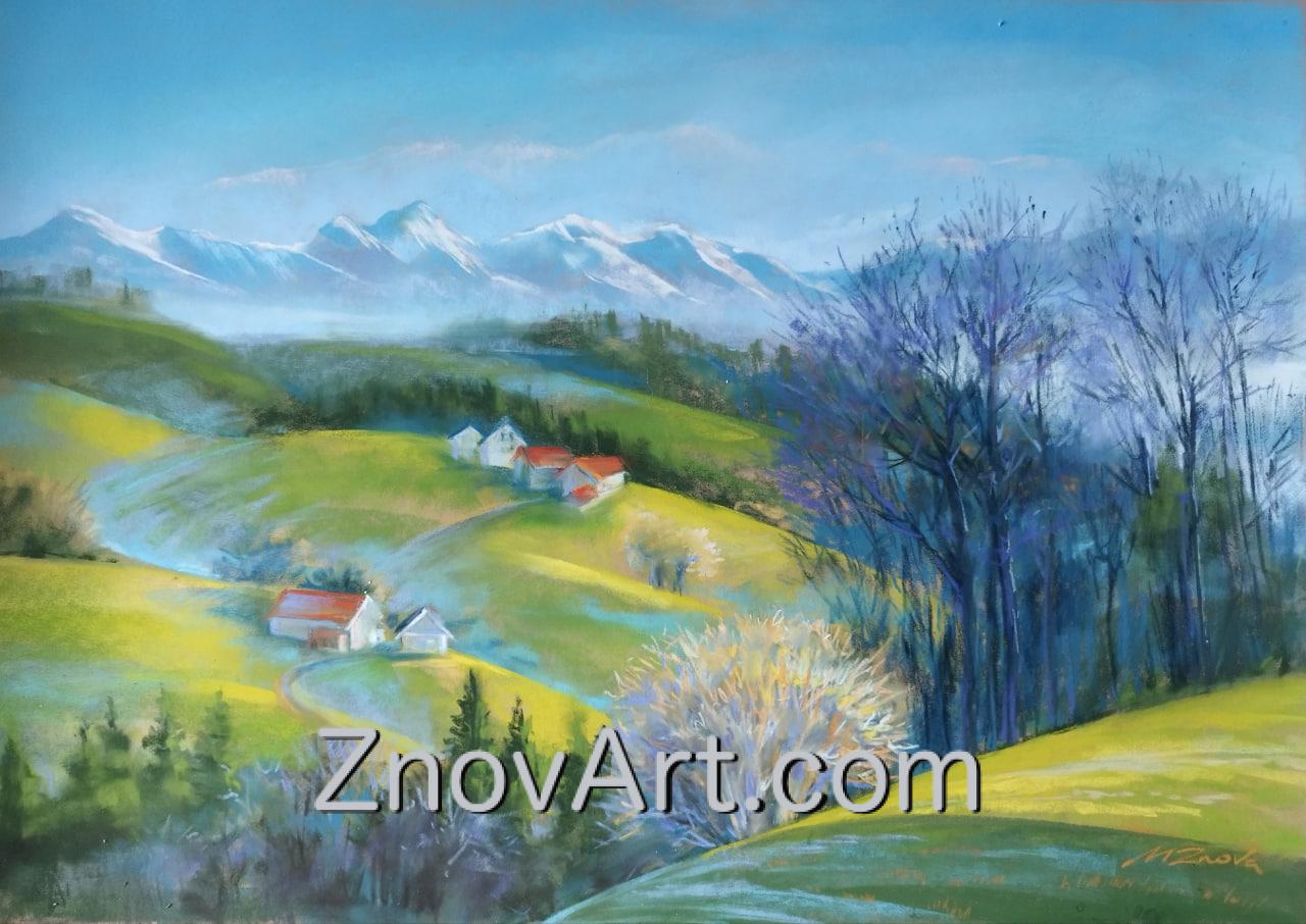 #Pastel #Watercolor #SwissIdyll #AlpineParadise #LandscapeArt #PeacefulRetreat #MountainMajesty