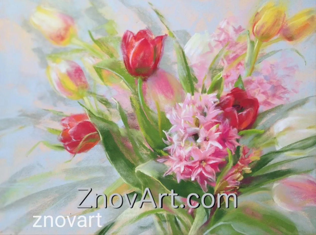 #Flowers #Pastel #Watercolor #Tulips #Hyacinths #SpringBlossoms #FloralBeauty #NatureArt #VividColors
