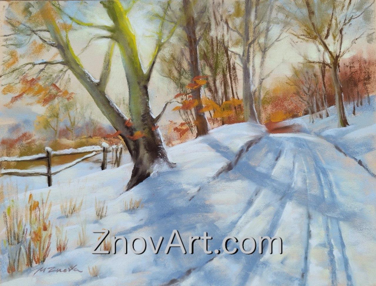#Pastel #Watercolor #WinterWhispers #AutumnalEchoes #SnowyPath #ForestMusing #ArtisticNature